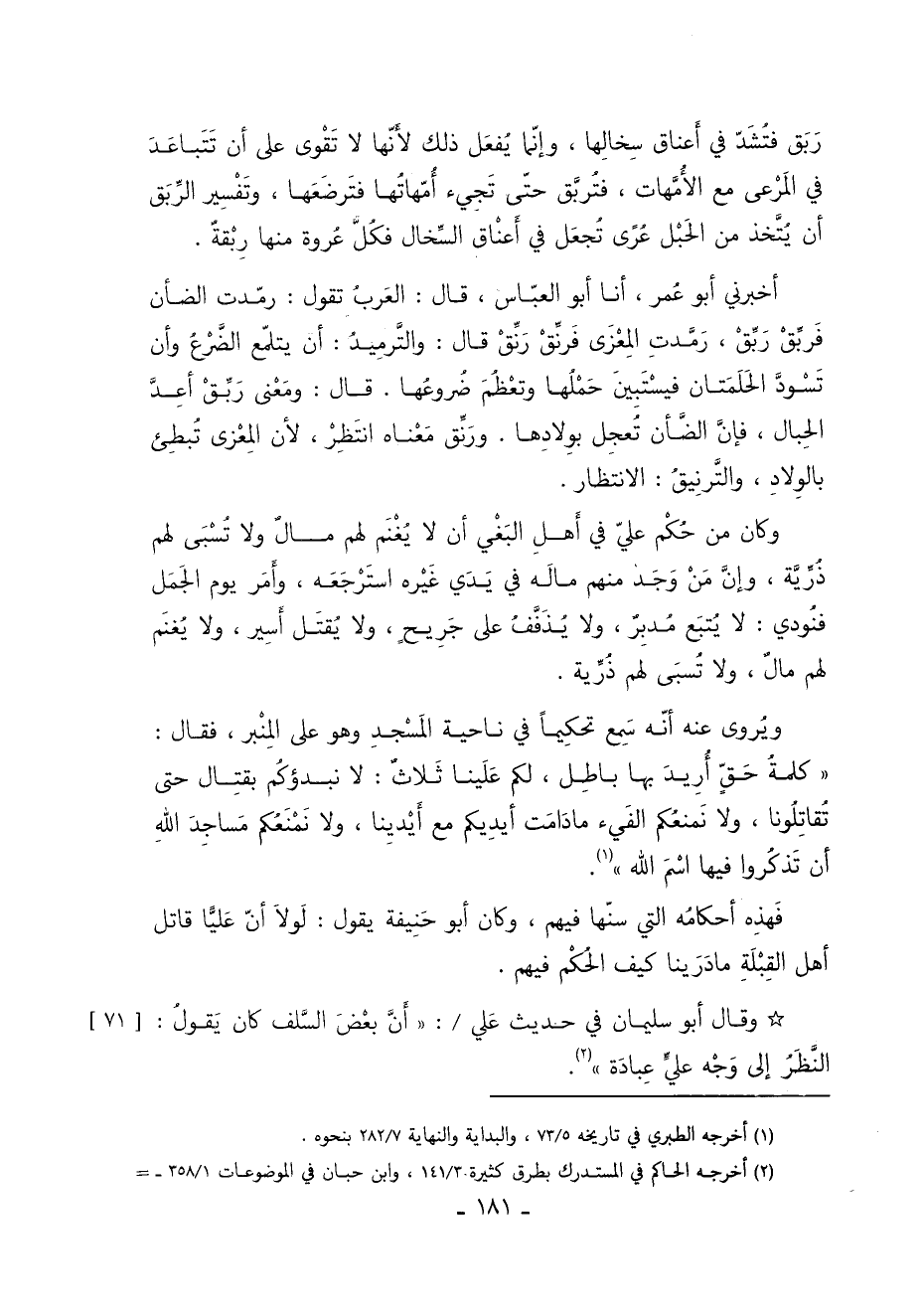 فهذه أحكامه التي سنها فيهم وكان أَبُو حنيفة يقول لولا أن عليا قاتل أهل القبلة ما درينا كيف الحكم فيهم.