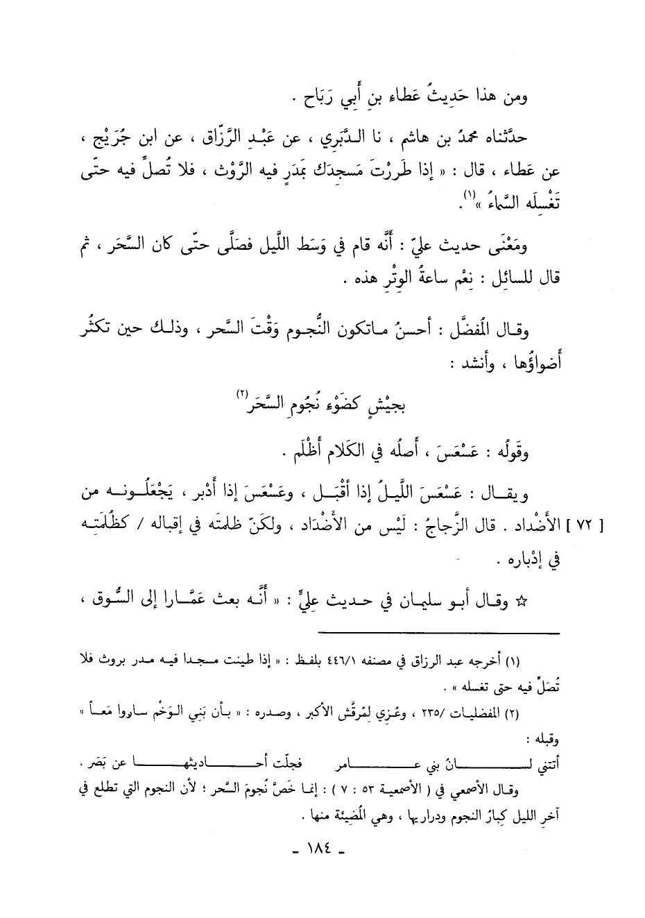 وقال الأصمعي: في "الأصمعية "7:53": إنما خص نجوم السحر لأت النجوم التي تطلع في آحر الليل كبار النجوم ودراريها وهي المضيئة منها.