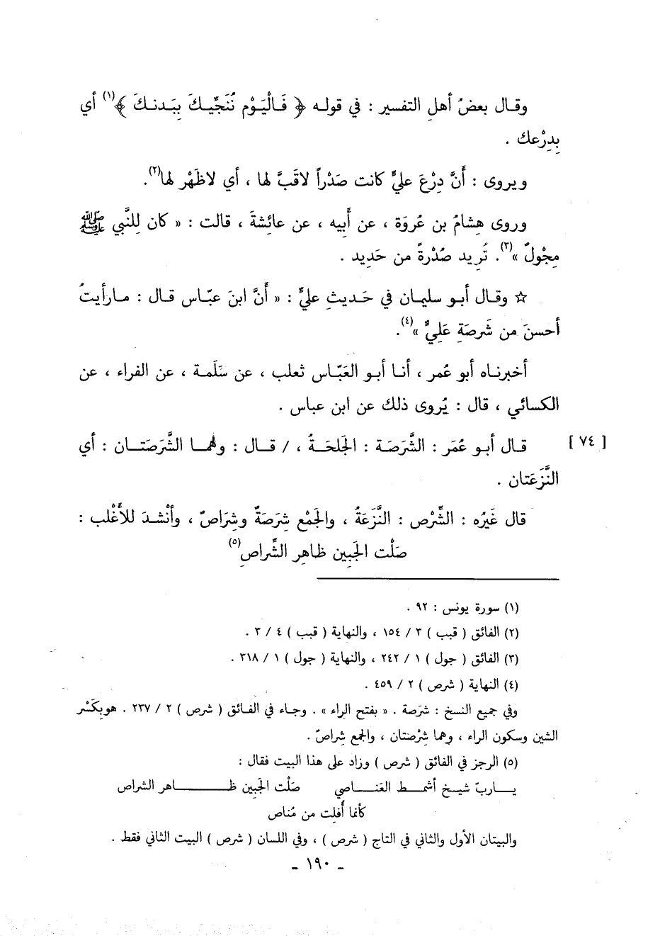 [74] قَالَ أَبُو عُمَر الشرصة الجلحة / قَالَ: وهما الشرصتان أي النزعتان.