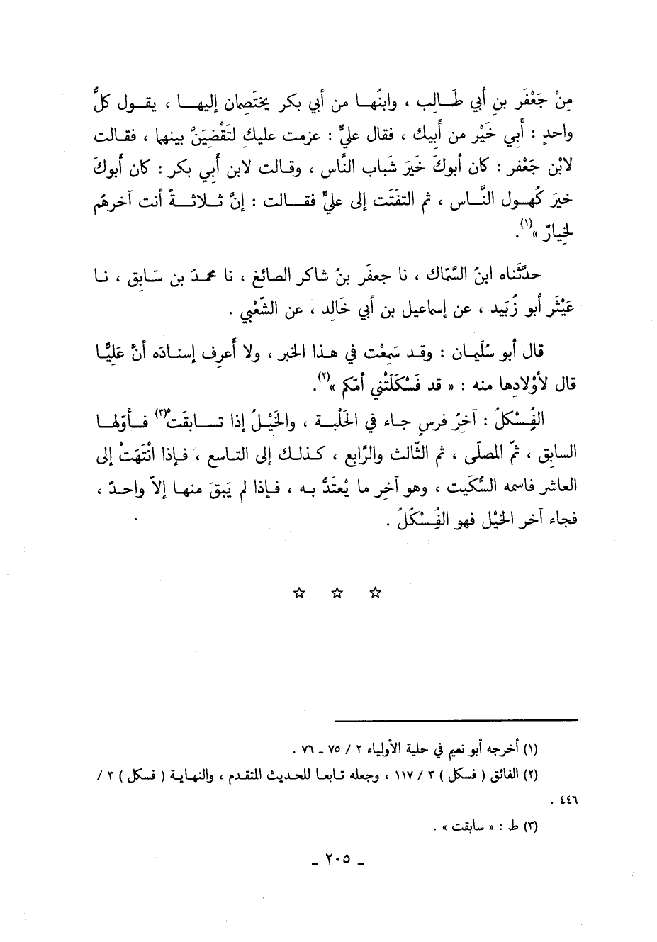 قَالَ أَبُو سُلَيْمَانَ وقد سمعت في هذا الخبر ولا أعرف إسناده أن عليا قَالَ لأولادها منه قد فسكلتني أمكم 2.