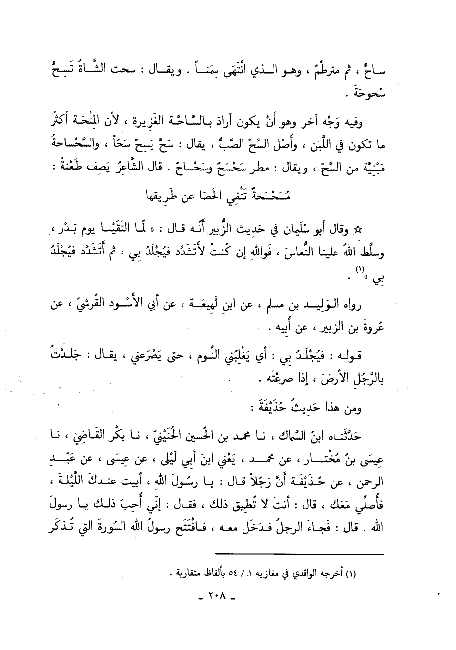وَقَالَ أَبُو سُلَيْمَانَ فِي حَدِيثِ الزُّبَيْرِ أَنَّهُ قَالَ لَمَّا الْتَقَيْنَا يَوْمَ بَدْرٍ وَسَلَّطَ اللَّهُ عَلَيْنَا النُّعَاسَ فَوَاللَّهِ إِنْ كُنْتُ لأَتَشَدَّدُ فَيُجْلَدُ بِي ثُمَّ أَتَشَدَّدُ فَيُجْلَدُ بِي 1.