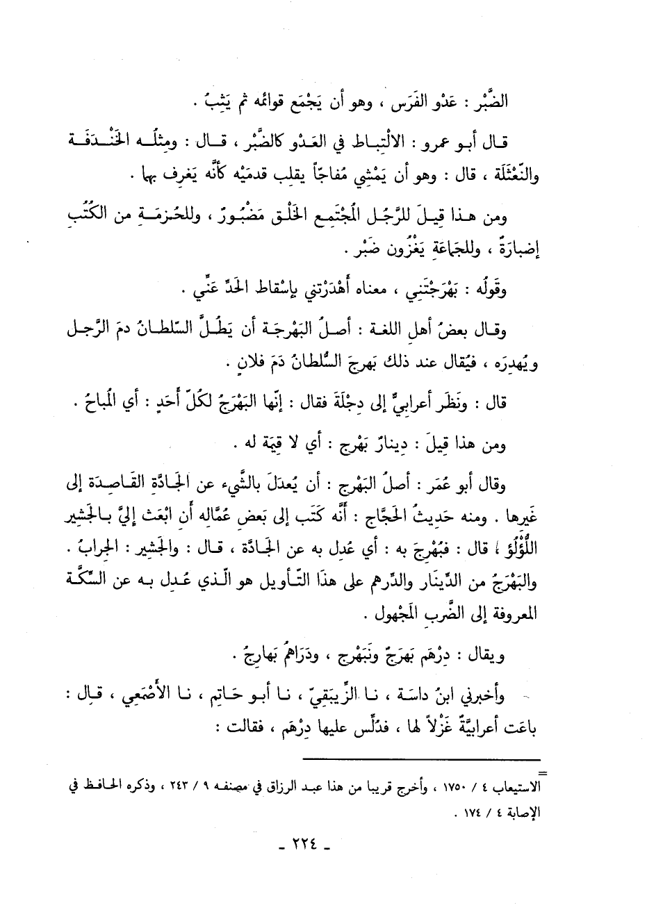 وَقَالَ بعض أهل اللغة أصل البهرجة أن يطل السلطان دم الرجل ويهدره فيقال عند ذلك بهرج السلطان دم فلان.