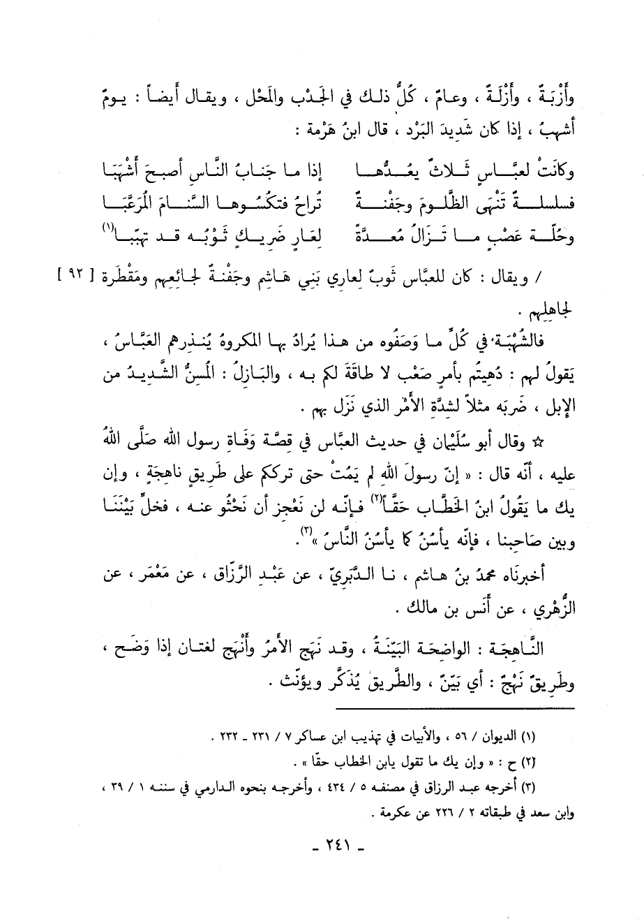 ويقال: كان للعباس ثوب لعاري بني هاشم وجفنة لجائعهم ومقطرة لجاهلهم. [92]