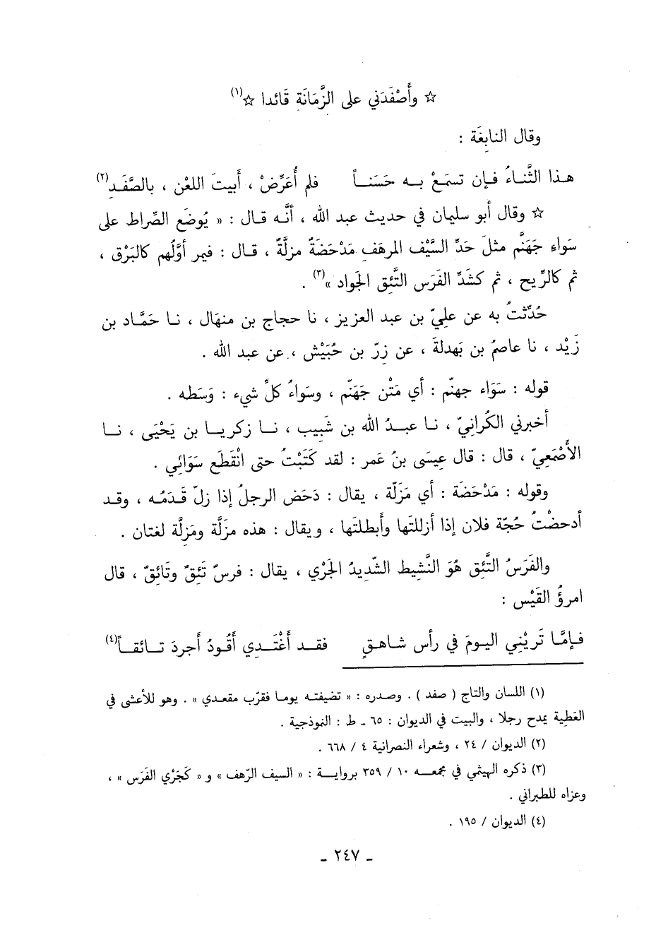 هذا الثناء فإن تسمع به حسنا ... فلم أعرض أبيت اللعن بالصفد 2