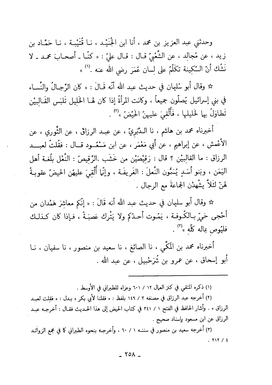 1 أخرجه عبد الرزاق في مصنفه "3/ 149" بلفظ: "فقلنا لأبي بكر" بدل "فقلت لعبد الرزاق" وأشار الحافظ في الفتح "1/ 341" في كتاب الحيض إلى هذا الحديث فقال: أخرجه عبد الرزاق عن ابن مسعود بإسناد صحيح.