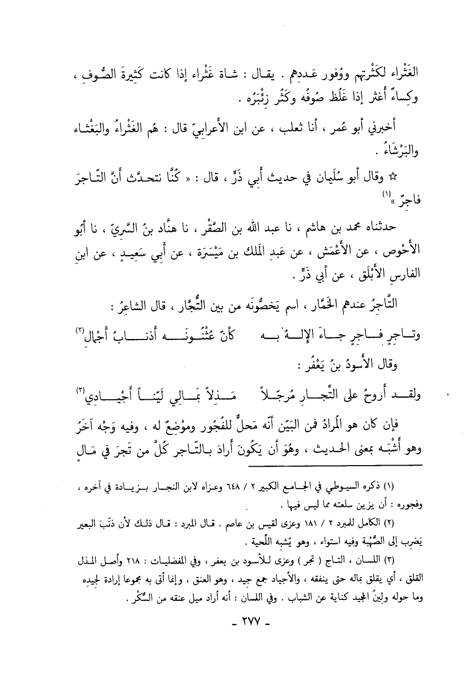 وَقَالَ أَبُو سُلَيْمَانَ فِي حَدِيثِ أَبِي ذَرٍّ قَالَ كُنَّا نَتَحَدَّثُ أَنَّ التَّاجِرَ فَاجِرٌ 1.