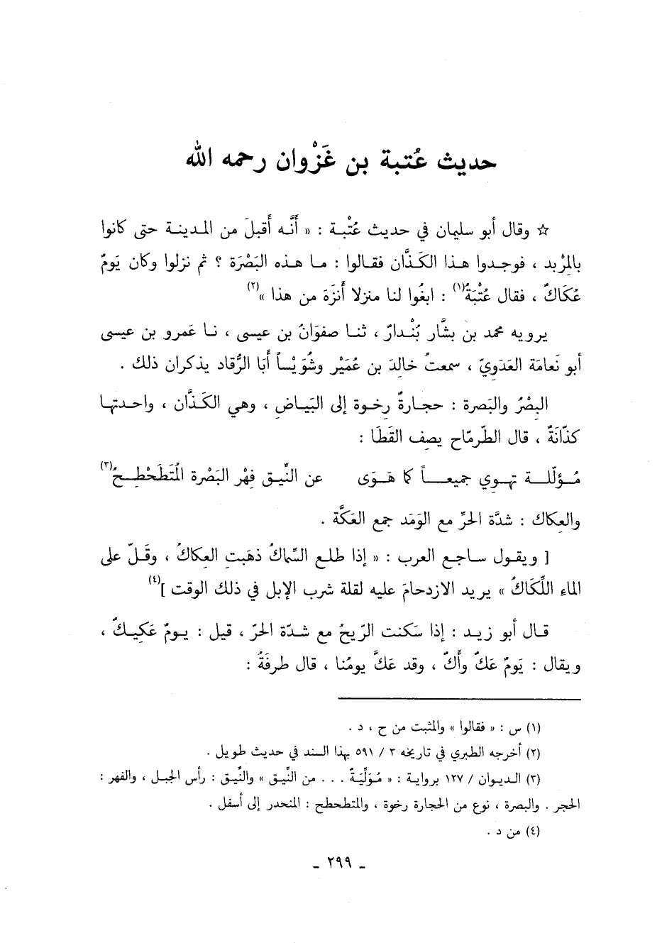 حَدِيثِ عُتْبَةَ أَنَّهُ أَقْبَلَ مِنَ الْمَدِينَةِ حَتَّى كَانُوا بِالْمَرْبَدِ فَوَجَدُوا هَذَا الْكَذَّانِ فَقَالُوا: "مَا هَذِهِ الببصرة؟ ... ".