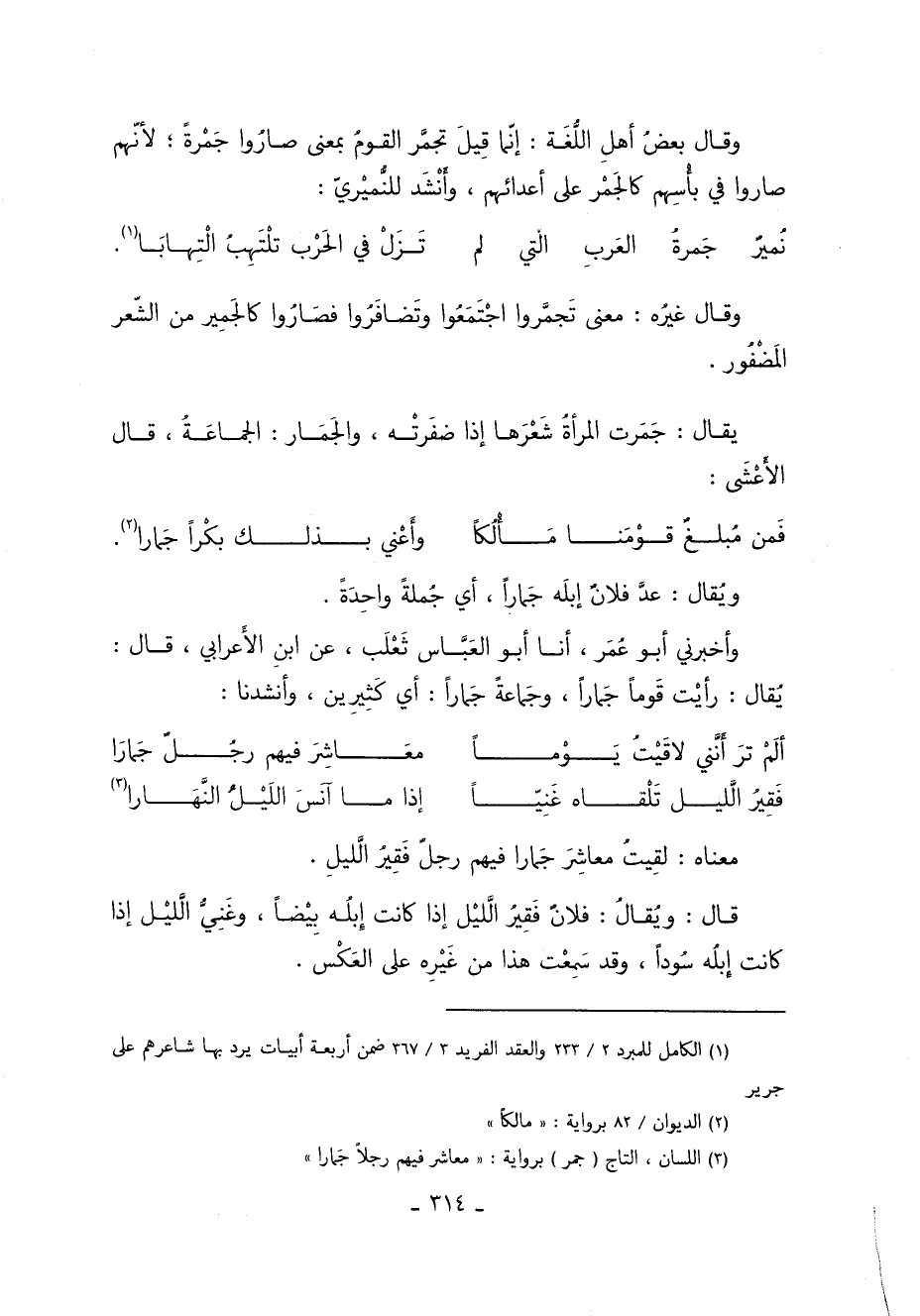 3 اللسان والتاج "جمر" برواية "معاشر فيهم رجلا جمارا".