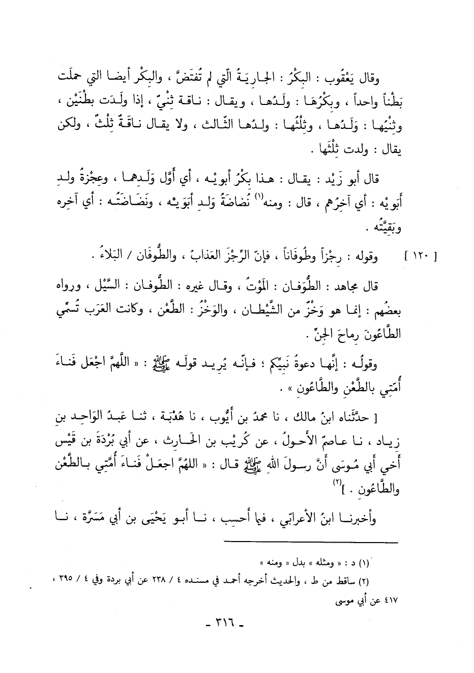 حدثناه ابن مالك أخبرنا محمد بن أيوب أخبرنا هدبة حدثنا عبد الواحد بن زياد أخبرنا عَاصِمٌ الأَحْوَلُ عَنْ كُرَيْبِ بْنِ الْحَارِثِ عَنْ أَبِي بَرَدَةَ بْنِ قَيْسٍ أَخِي أَبِي مُوسَى أَنَّ رَسُولُ اللَّهِ صَلَّى اللَّهُ عَلَيْهِ وَسَلَّمَ قَالَ: "اللَّهُمَّ اجْعَلْ فَنَاءَ أُمَّتِي بِالطَّعْنِ وَالطَّاعُونِ" 2.