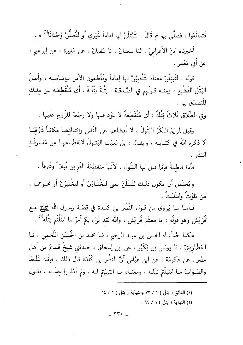 1 الفائق "بتل" "1/ 73" والنهاية "بتل" "1/ 94".