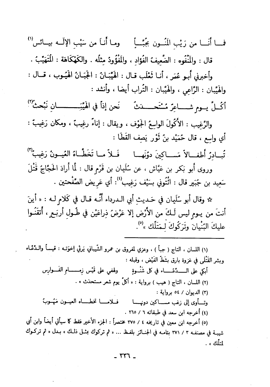 وأخبرني أبو عمر أنبأنا ثعلب قَالَ الهيبان الجبان الهيوب قَالَ: والهيبان الراعي والهيبان التراب أيضا وأنشد: