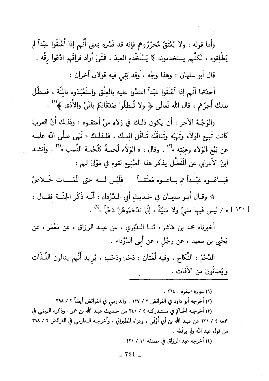 3 أخرجه الحاكم في مستدركه "4/ 341" من حدديث عبد الله بن غمر وذكره الهيثمي في مجمعه "4/ 231" عَنْ عَبْدِ اللَّهِ بْنِ أَبِي أوفى وعزاه للطبراني وأخرجه الدارمي ف الفرائض "2/ 398" من قول عبد الله ولم يرفعه.