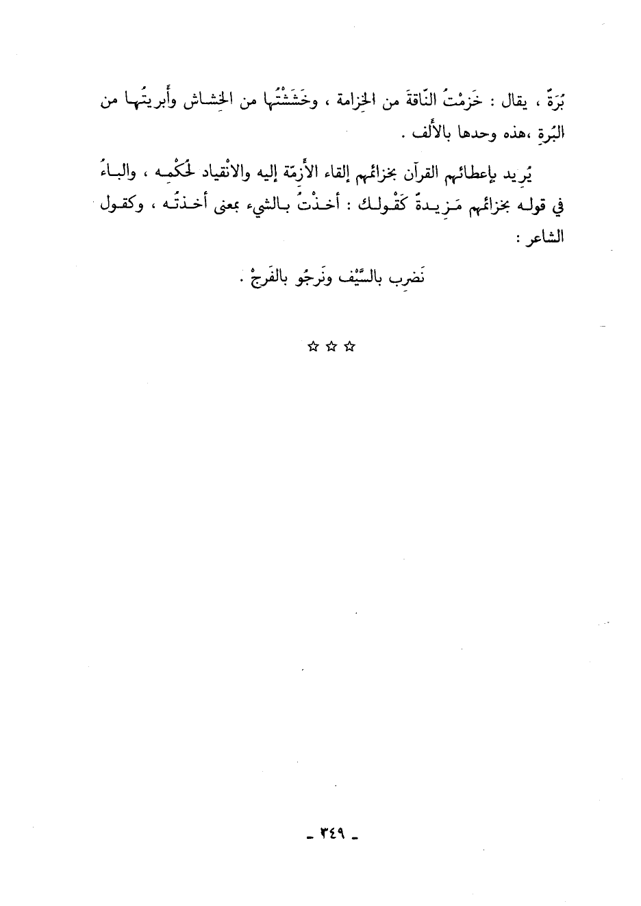 برة يُقَالُ خزمت الناقة من الخزامة وخششتها من الخشاش وأبريتها من البرة هذه وحدها بالألف.