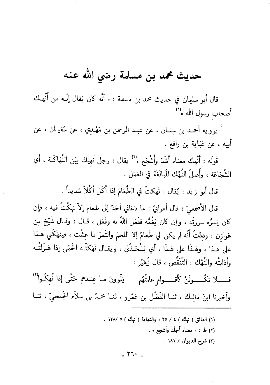 حَدِيثِ مُحَمَّدِ بْنِ مَسْلَمَةَ أَنَّهُ كَانَ يُقَالُ: إِنَّهُ مِنْ أَنْهَكِ أَصْحَابِ رَسُولُ اللَّهِ صَلَّى اللَّهُ عليه وسلم