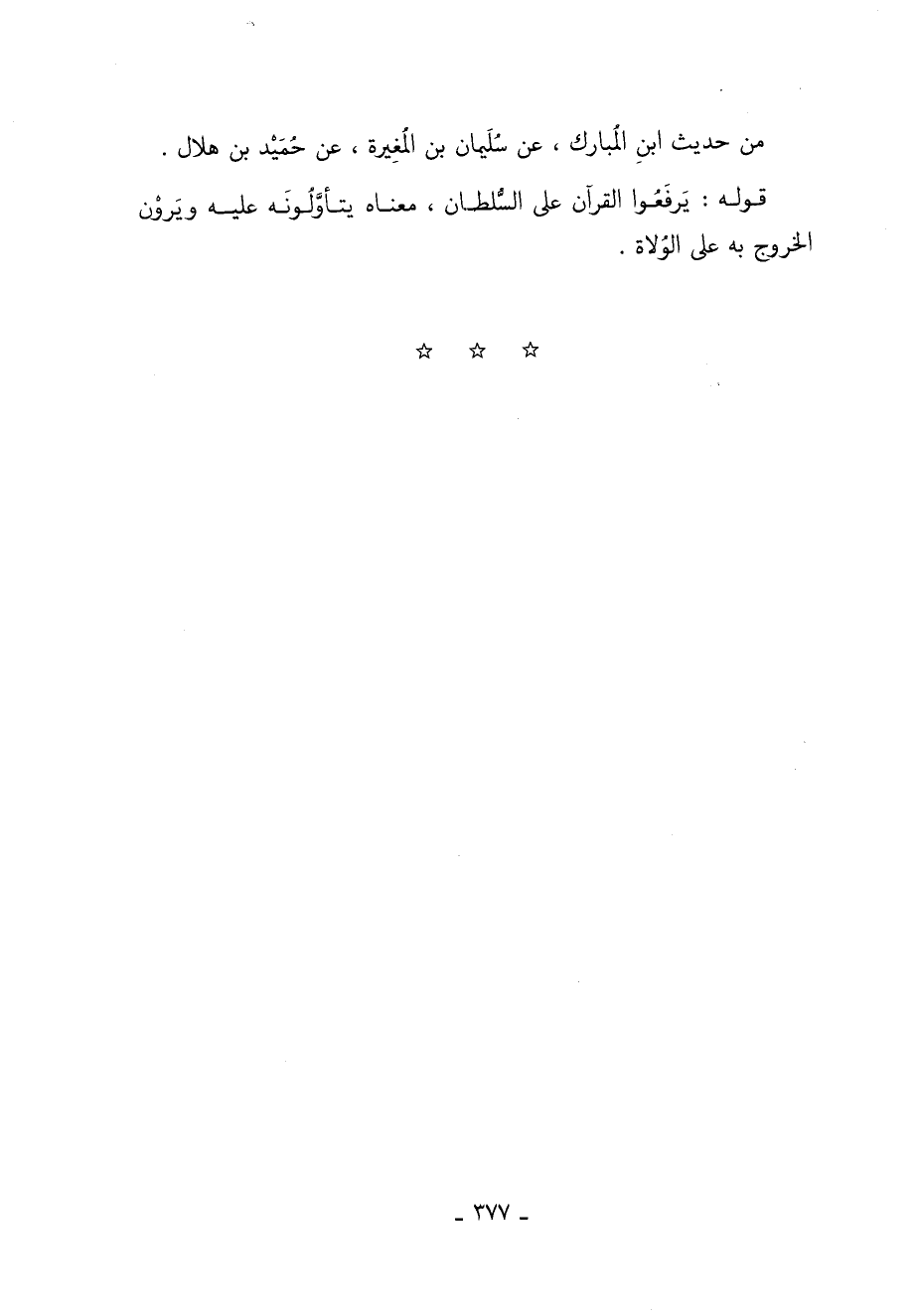 مِنْ حَدِيثِ ابْنِ الْمُبَارَكِ عَنْ سُلَيْمَانَ بْنِ الْمُغِيرَةِ عَنْ حُمَيْدِ بْنِ هِلالٍ.