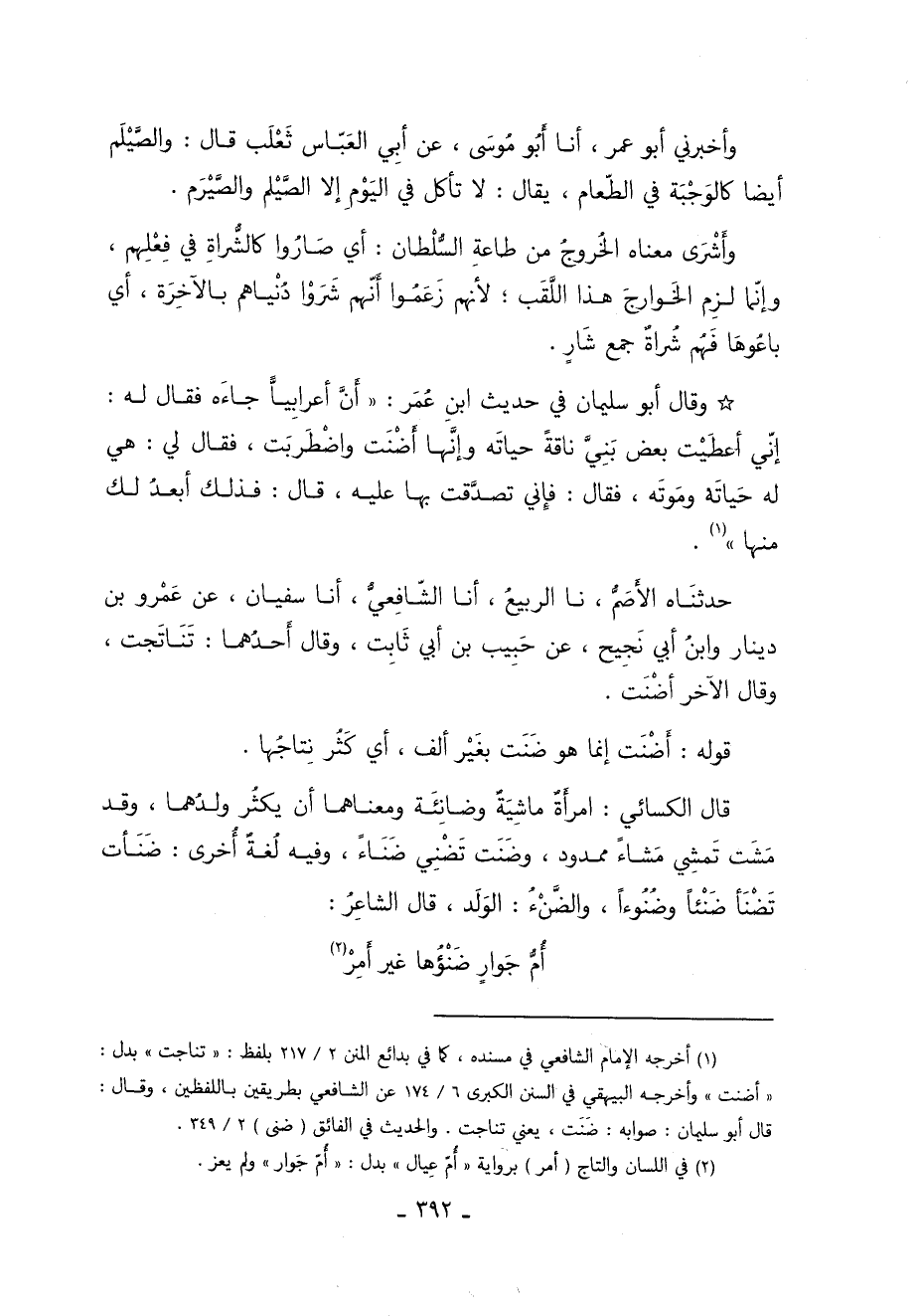 1 أخرجه الإمام الشافعي في مسنده كما في بدائع المنن "2/ 217" بلفظ "تناجت" بدل "أضنت" وأخرجه البيهقي في السنن الكبرى "6/ 174" عن الشافعي بطريقين باللفظين وقال: قال سليمان: صوابه ضنت, يعني تناجت, والحديث في الفائق "صنى" "2/ 349".