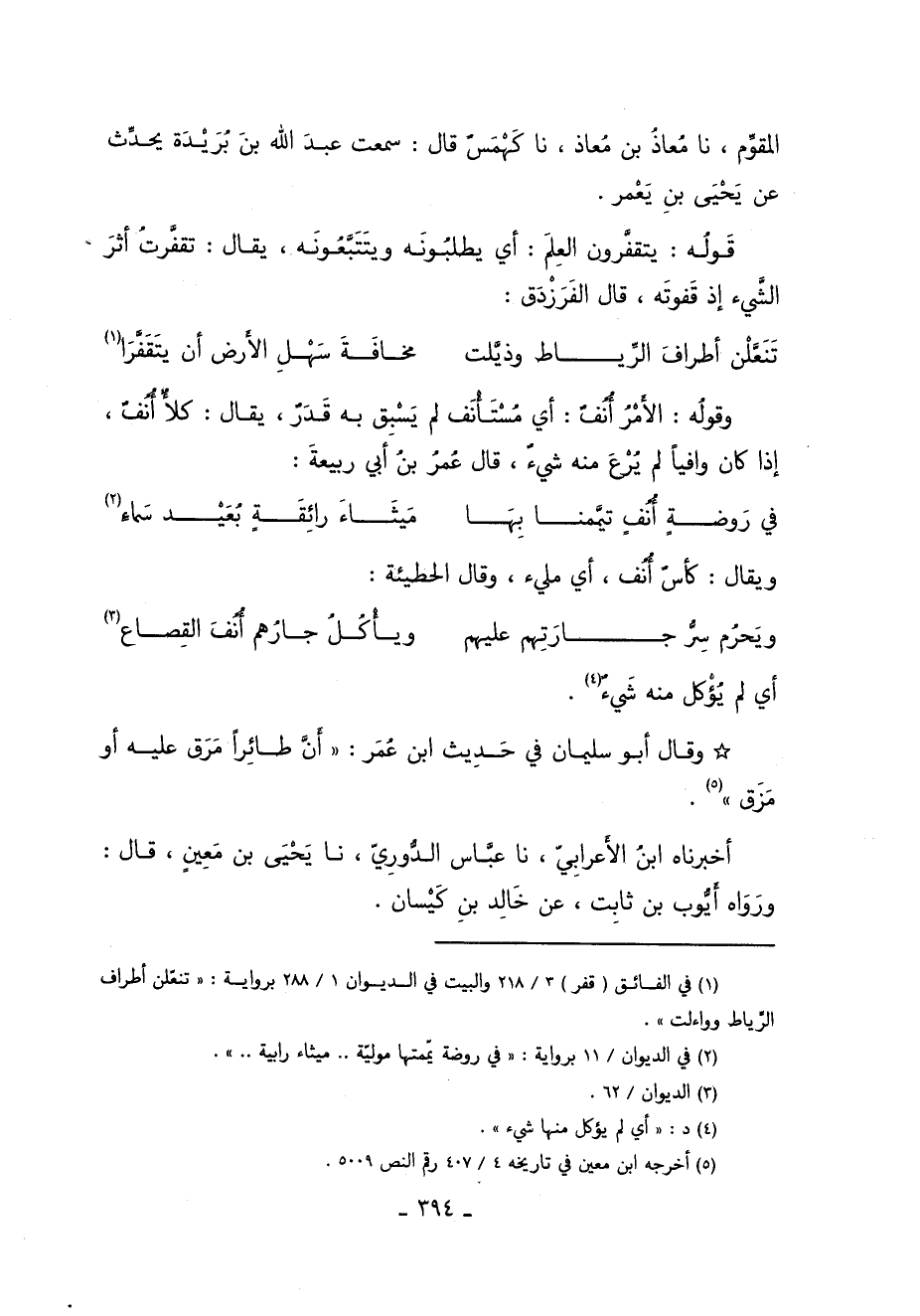 1 في الفائق "قفر" "3/ 218" والبيت في الديوان "1/ 288" برواية "تنعلن أطراف الرياط وواءلت".