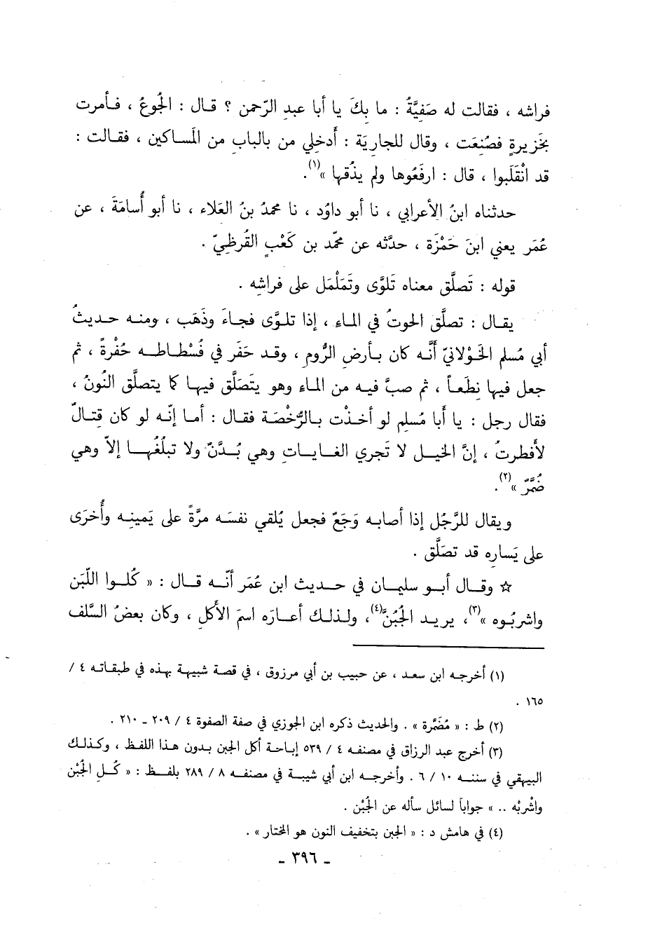 وَقَالَ أَبُو سُلَيْمَانَ فِي حَدِيثِ ابْنِ عُمَرَ أَنَّهُ: تَصَلَّقَ ذَاتَ لَيْلَةٍ عَلَى فِرَاشِهِ فَقَالَتْ لَهُ صَفِيَّةٌ مَا بِكَ يَا أَبَا عبد الرحمن قَالَ الْجُوعُ فَأَمَرَتْ بِخَزِيرَةٍ فَصُنِعَتْ وَقَالَ لِلْجَارِيَةِ أَدْخِلِي مَنْ بِالْبَابِ مِنَ الْمَسَاكِينَ فَقَالَتْ قَدِ انْقَلَبُوا قَالَ ارْفَعُوهَا وَلَمْ يَذُقْهَا 1.