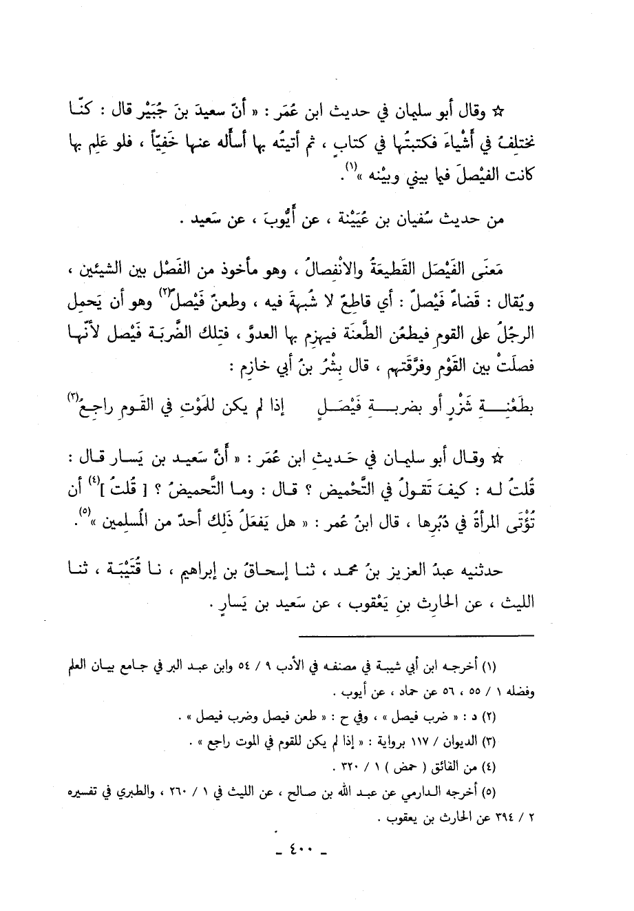 1 أخرجه ابن شيبة في مصنفه في الأدب "9/ 54" وابن عبد البر في جامع بيان العلم وفضله "1/ 55, 56" عن حماد عن أيوب.