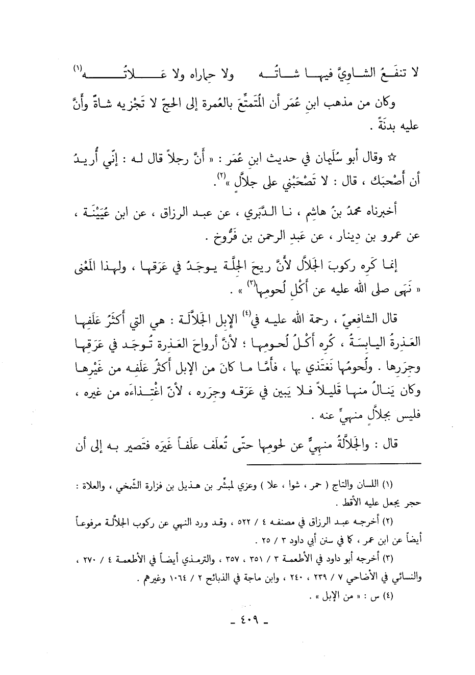 1 أخرجه عبد الرزاق في مصنفه "4/ 522" وقد ورد النهي عن ركوب الجلالة مرفوعا أيضا عن ابن عمر كما في سنن أبي داود "3/ 25".