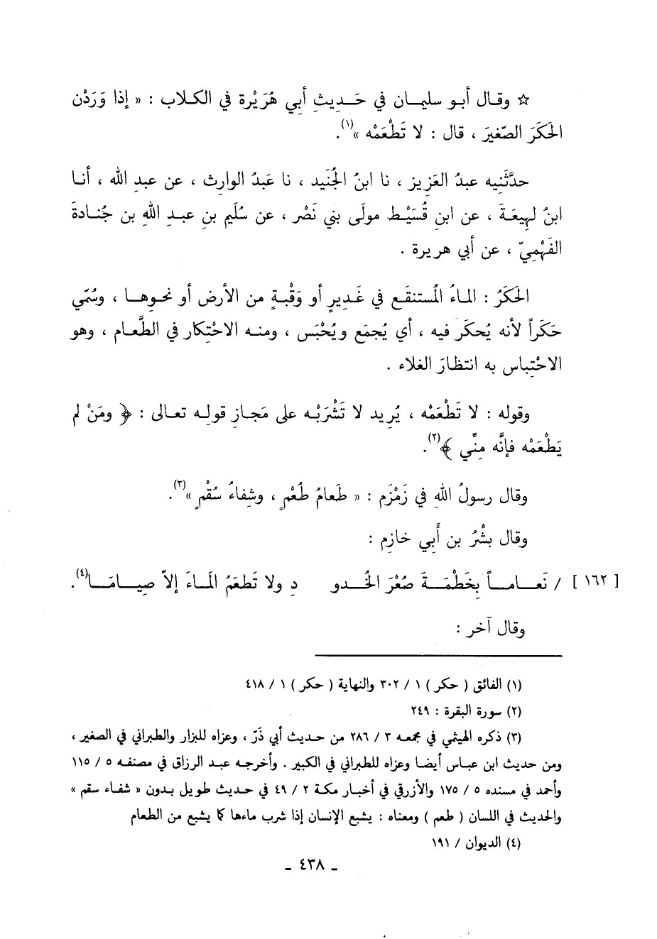 وَقَالَ أَبُو سُلَيْمَانَ فِي حَدِيثِ أَبِي هُرَيْرَةَ فِي الْكِلابِ إِذَا وَرَدْنَ الْحَكَرَ الصَّغِيرَ قَالَ: لا تطعمه 1