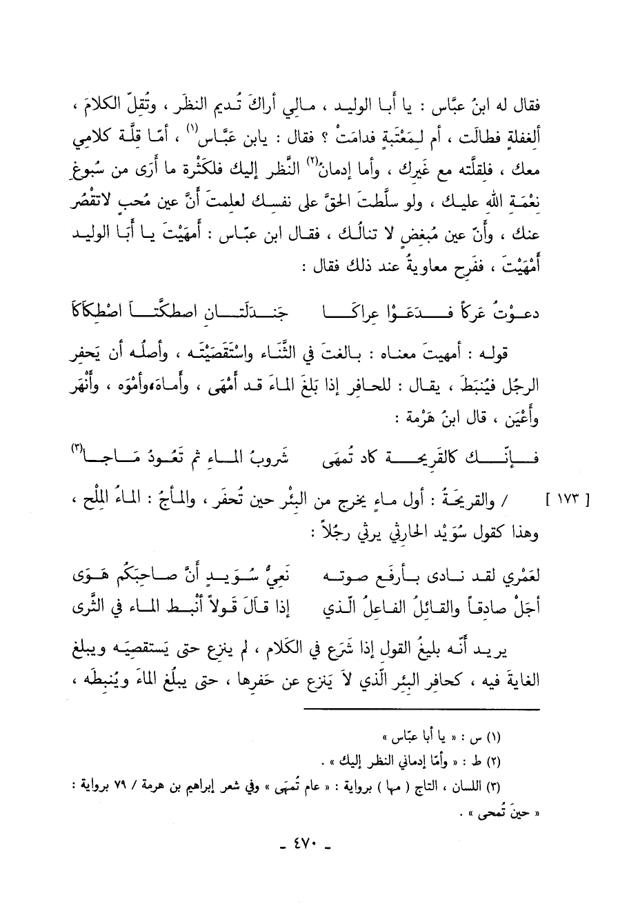 [173] / والقريحة: أول ماء يخرج من البئر حين تحفر والمأج الماء الملح وهذا كقول سويد الحارثي يرثي رجلا