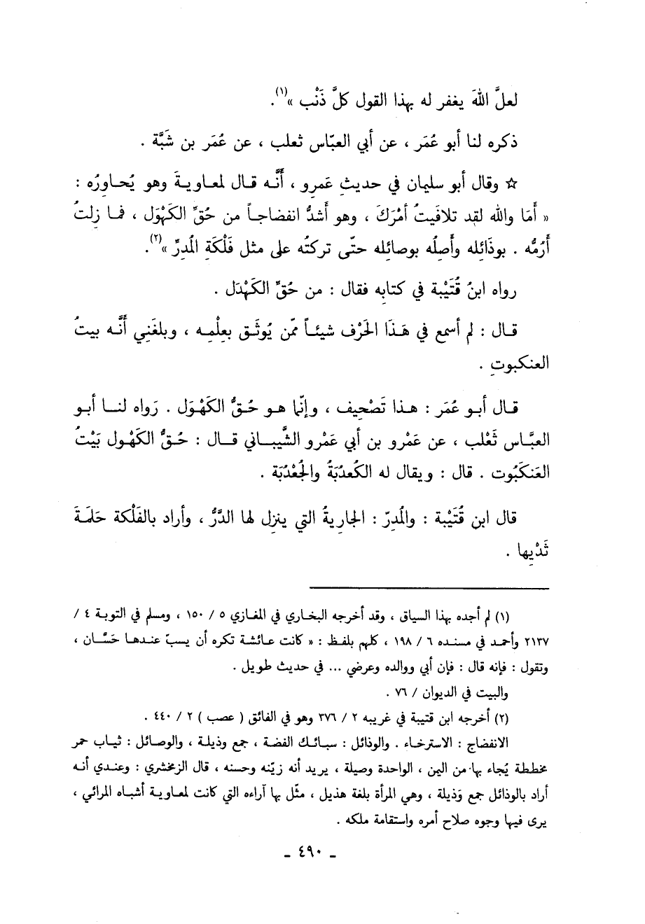 ذَكَرَهُ لَنَا أبو عُمَر عن أبي العباس ثَعْلَبٌ عَنْ عُمَرَ بْنِ شَبَّةَ.