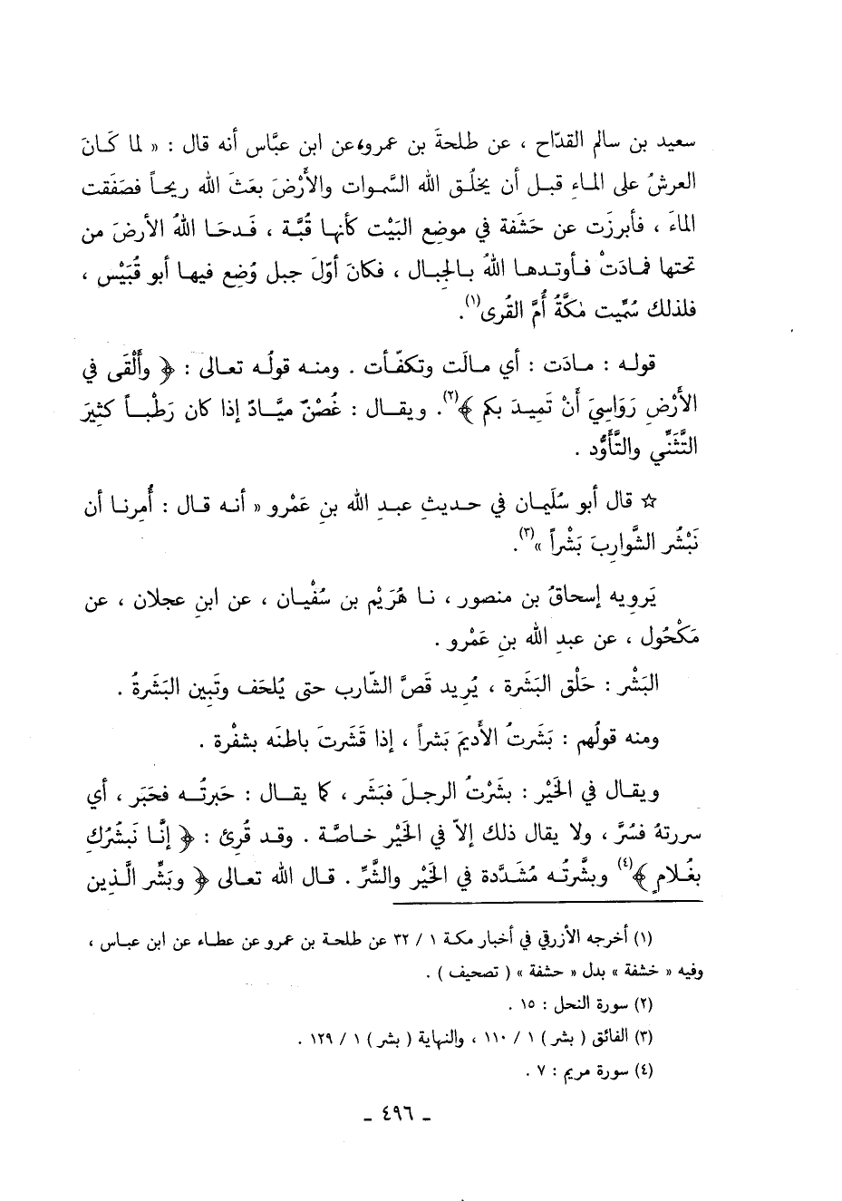 1 أخرجه الأزرقي في أخبار مكة "1/ 32" عَنْ طَلْحَةَ بْنِ عَمْرٍو عَنْ عطاء عن ابن عباس وفيه "خشفة" بدل "حشفة" "تصحيف".