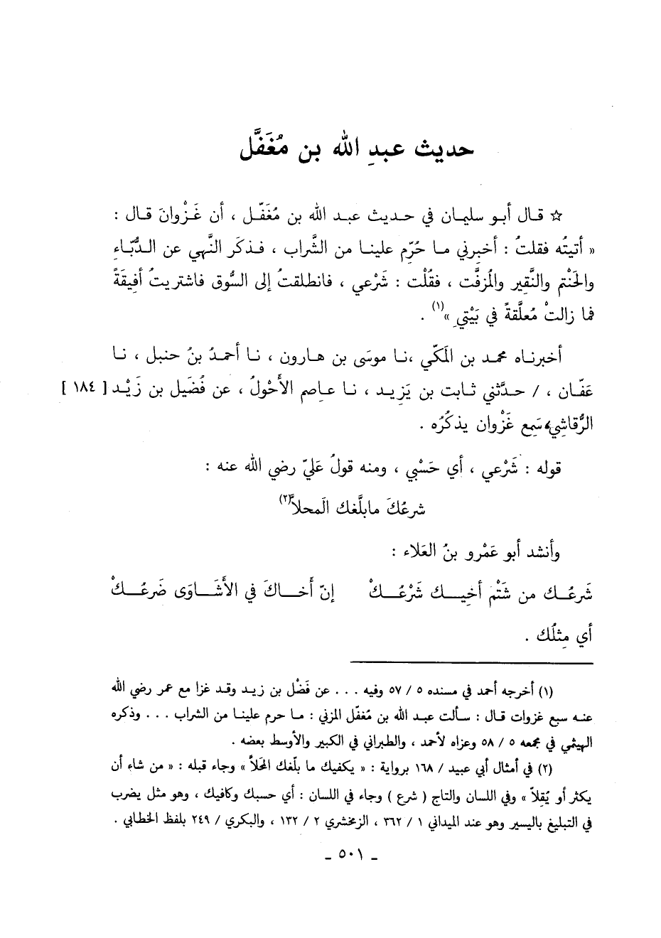 1 أخرجه أحمد في مسنده "5/ 57" وفيه ... "عن فضل بن زيد وقد غزاه مع عمر رضي الله عنه سبع غزوات قال: سألت عبد الله بن مغفل المزني: مَا حُرِّمَ عَلَيْنَا مِنَ الشَّرَابِ .. وذكره الهيثمي في مجمعه "5/ 58" وعزاه لأحمد والطبراني في الكبير والأوسط بعضه.