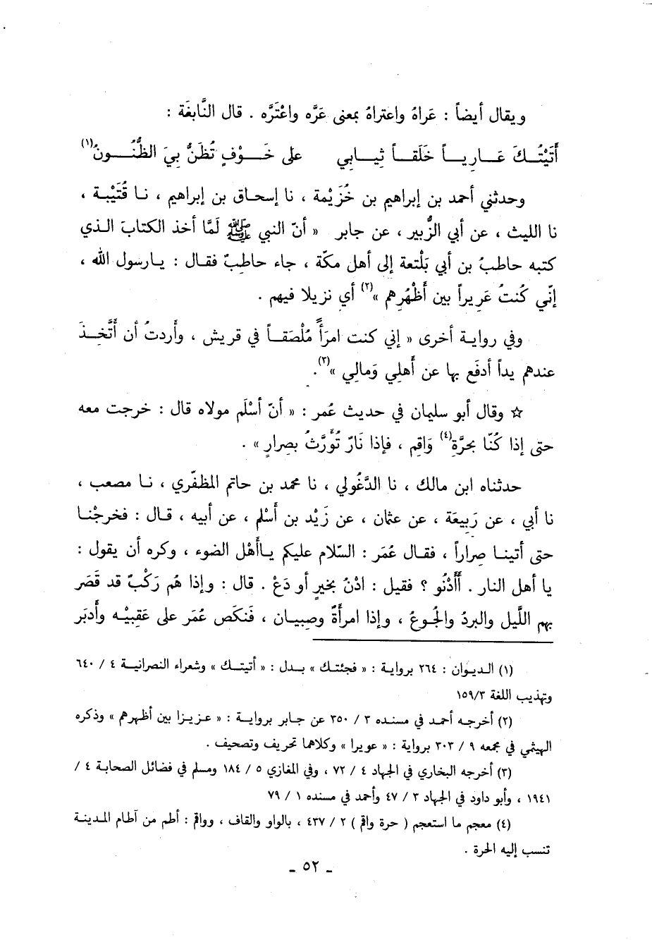 وَحَدَّثَنِي أَحْمَدُ بن إبراهيم بن خزيمة أخبرنا إسحاق بن إبراهيم أخبرنا قتيبة أخبرنا اللَّيْثُ عَنْ أَبِي الزُّبَيْرِ عَنْ جَابِرٍ أَنَّ النَّبِي صَلَّى اللَّهُ عَلَيْهِ وَسَلَّمَ لَمَّا أَخَذَ الْكِتَابَ الَّذي كَتَبَهُ حَاطبُ بْنُ أَبِي بَلْتَعَةَ إِلَى أَهْلِ مَكَّةَ جَاءَ حَاطِبٌ فَقَالَ يَا رَسُولَ اللَّهِ: إِنِّي كُنْتُ عَرِيرًا بَيْنَ أَظْهُرِهِمْ 2 أَيْ نَزِيلا فِيهِمْ.