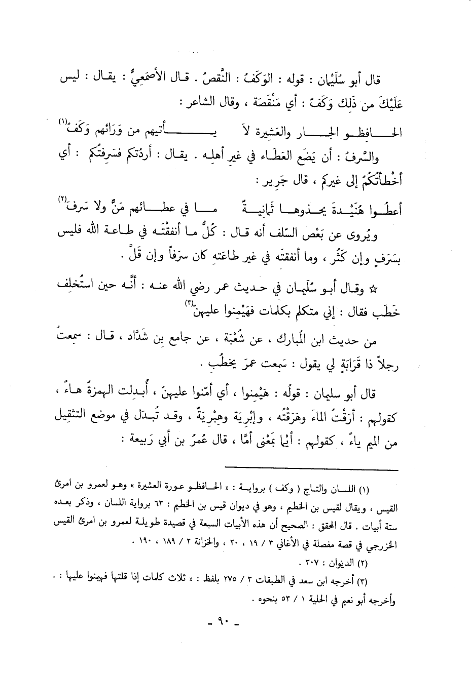 قَالَ أَبُو سُلَيْمَانَ قوله الوكف النقص. قَالَ الأصمعي: يُقَالُ: ليس عليك من ذلك وكف أي منقصة وَقَالَ الشاعر: