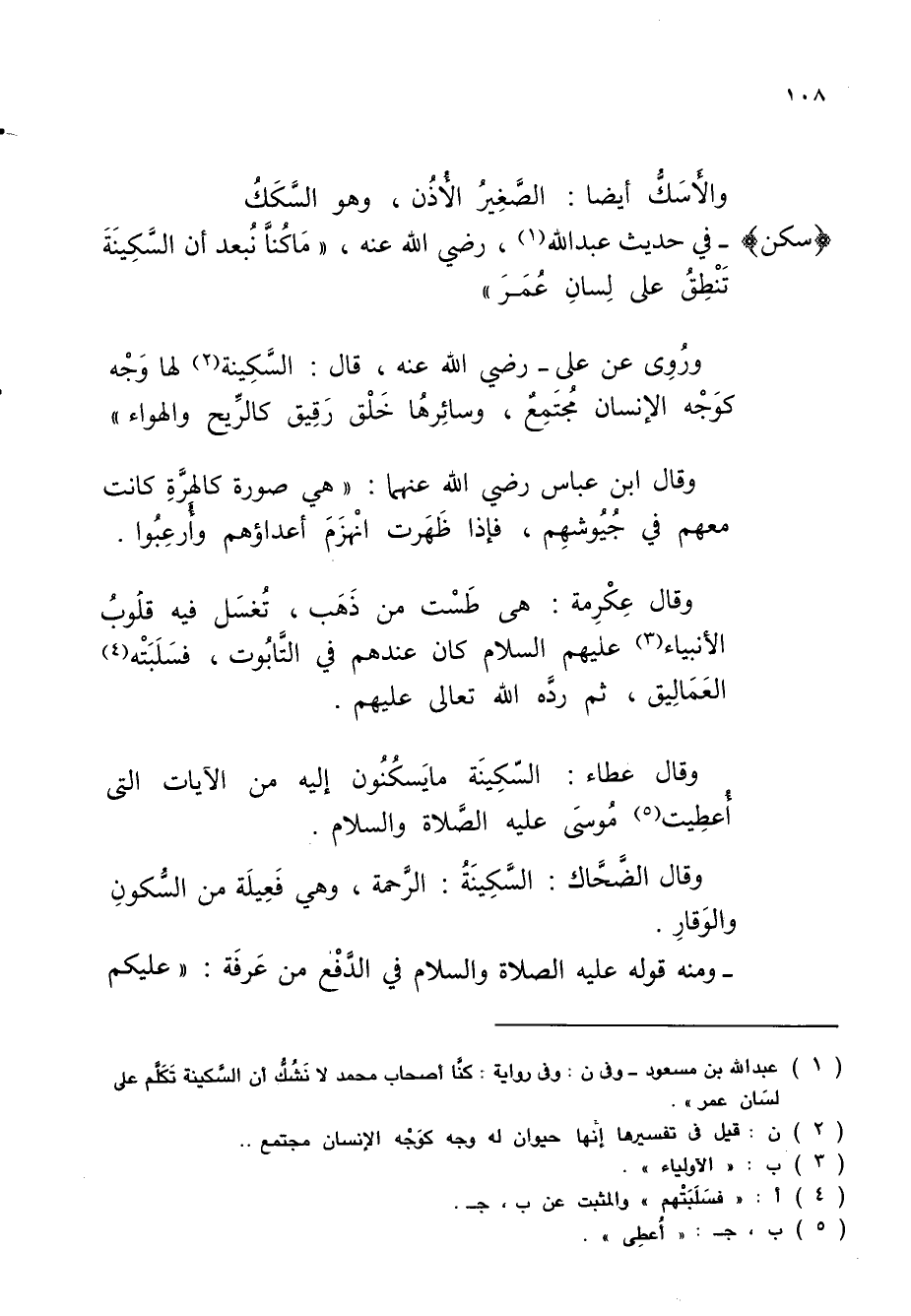 ورُوِى عن على - رضي الله عنه، قال: السَّكِينة (¬2) لها وَجْه كوَجْه الإنسان مُجتَمِعٌ، وسائِرُها خَلْق رَقِيق كالرِّيح والهواء"