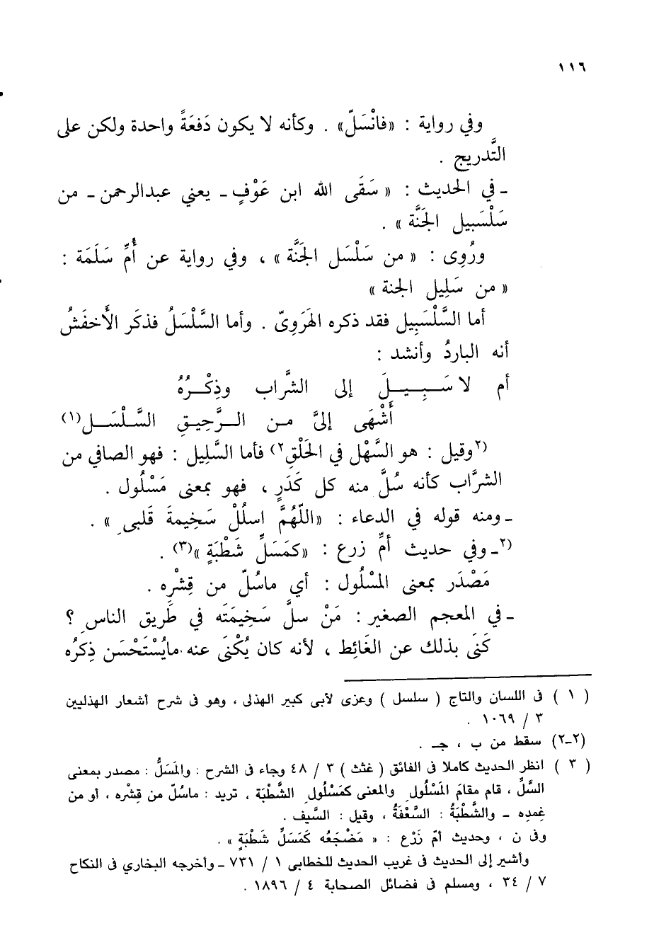 (2 وقيل: هو السَّهْل في الحَلْقِ 2) فأما السَّلِيل: فهو الصافي من الشرَّاب كأنه سُلَّ منه كل كَدَرٍ، فهو بمعنى مَسْلُول.