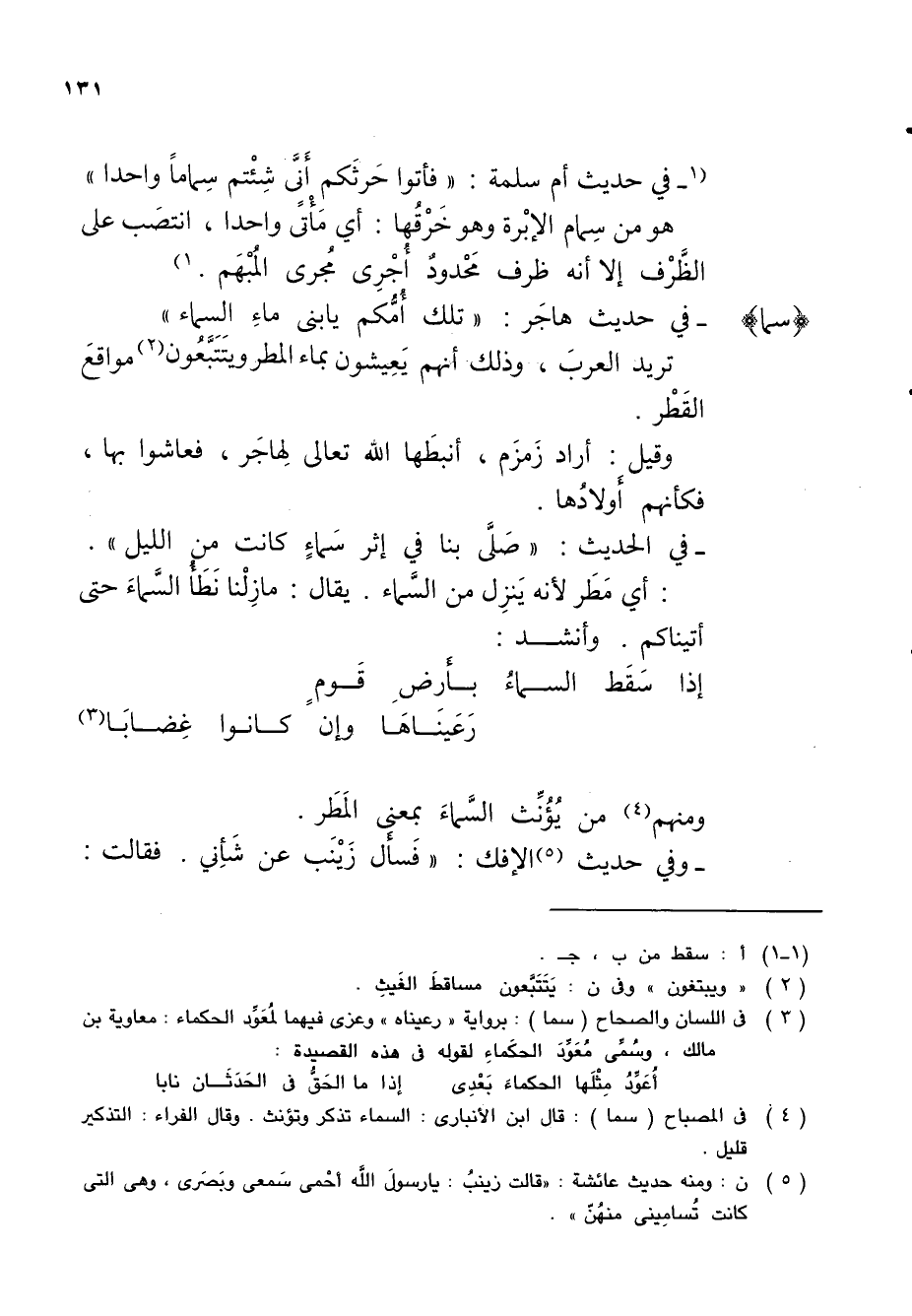 (¬5) ن: ومنه حديث عائشة: "قالت زينبُ: يا رسولَ اللَّه أحْمى سَمعى وبَصرَى، وهي التي كانت تُسامِينى منهُنّ".