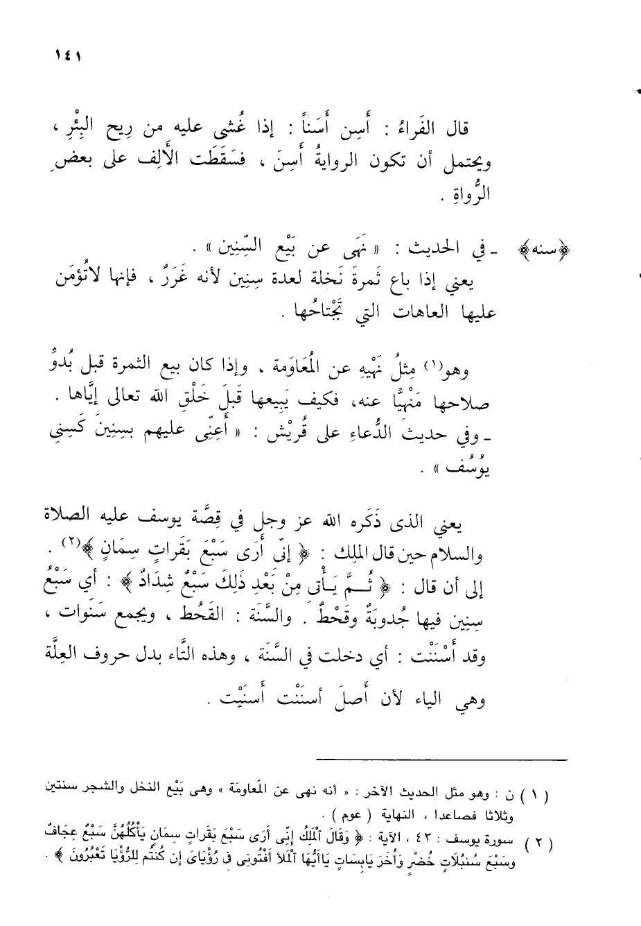 (سنه) - في الحديث: "نَهَى عن بَيْع السِّنِين".