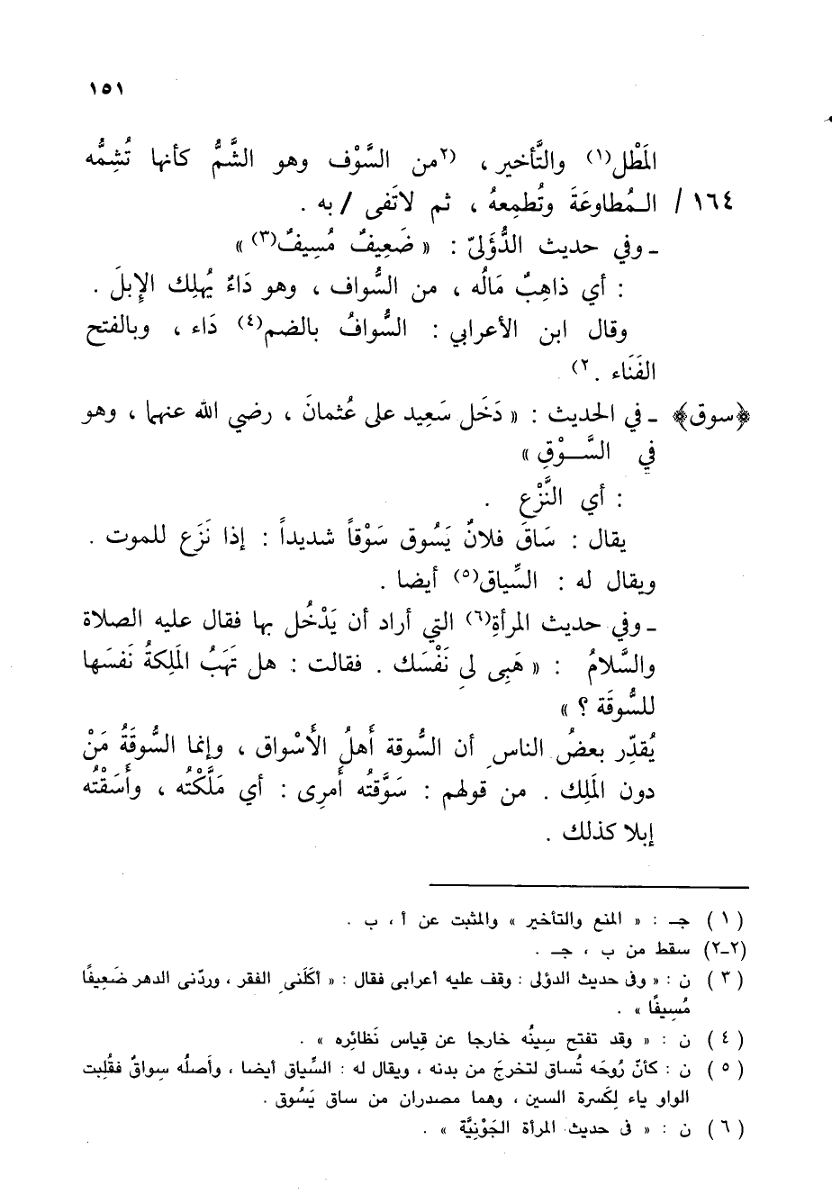 (¬5) ن: كأنّ رُوحَه تُساق لتخرجَ من بدنه، ويقال له: السِّياق أيضا، وأَصلُه سِواقٌ فقُلِبت الواو ياء لِكَسرة السين، وهما مصدران من ساق يَسُوق.