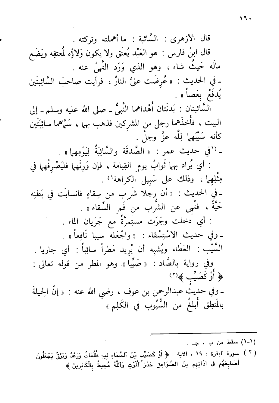 قال الأزهرى: السَّائبة: ما أهملته وتركته.