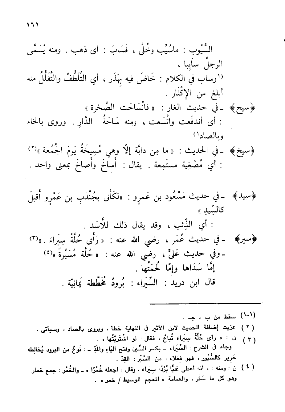(سير) - في حديث عُمَر، رضي الله عنه: "رَأَى حُلَّةً سَيراءَ." (¬3)