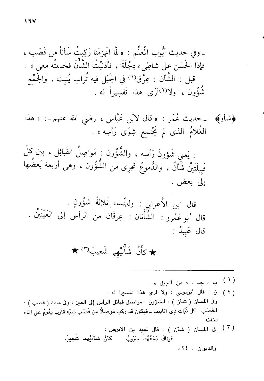 (¬3) في اللسان (شأن): قال عَبيد بن الأبرص: