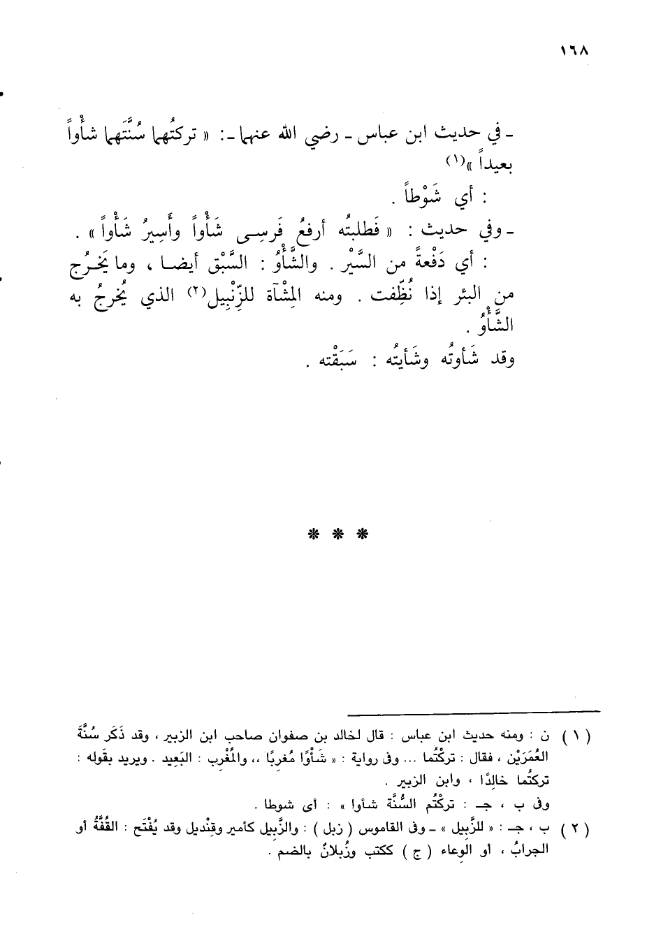 - في حديث ابن عباس - رضي الله عنهما -: "تركتُهما سُنَّتَهما شأْواً بعيداً" (¬1)