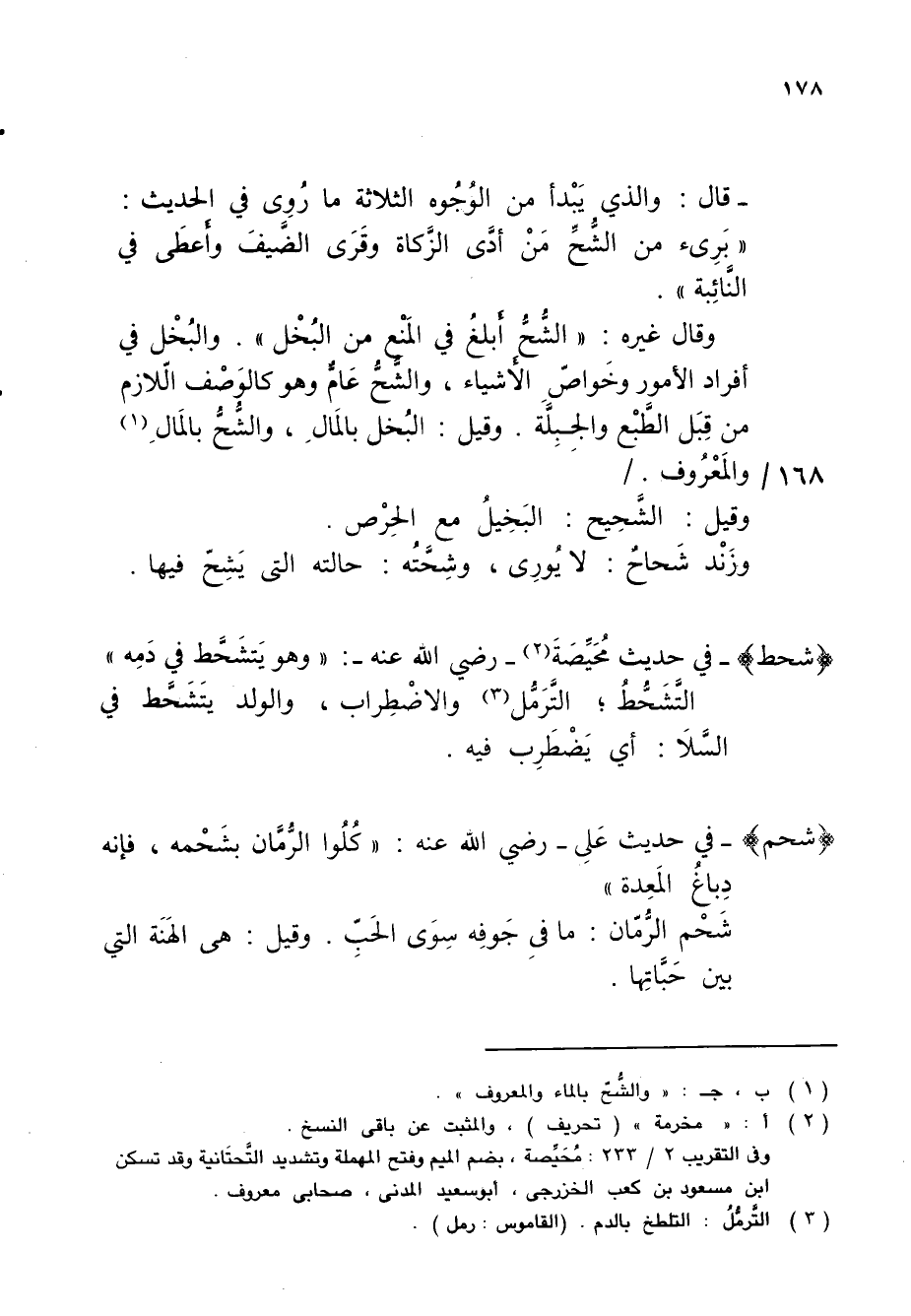 - قال: والذي يَبْدأ من الوُجُوه الثلاثة ما رُوِى في الحديث: "بَرِىء من الشُّحِّ مَنْ أدَّى الزَّكاة وقَرَى الضَّيفَ وأَعطَى في النَّائِبة"