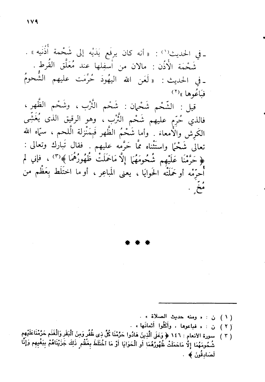 (¬3) سورة الأنعام: 146 {وَعَلَى الَّذِينَ هَادُوا حَرَّمْنَا كُلَّ ذِي ظُفُرٍ وَمِنَ الْبَقَرِ وَالْغَنَمِ حَرَّمْنَا عَلَيْهِمْ شُحُومَهُمَا إِلَّا مَا حَمَلَتْ ظُهُورُهُمَا أَوِ الْحَوَايَا أَوْ مَا اخْتَلَطَ بِعَظْمٍ ذَلِكَ جَزَيْنَاهُمْ بِبَغْيِهِمْ وَإِنَّا لَصَادِقُونَ}.