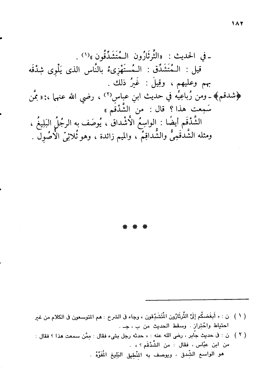 (¬1) ن: "أَبغَضكُم إلَىَّ الثَّرثَارُون المُتَشَدِّقون" وجاء في الشرح: هم المتوسعون في الكلام من غير احتياط واحْتِراز. وسقط الحديث من ب، جـ.