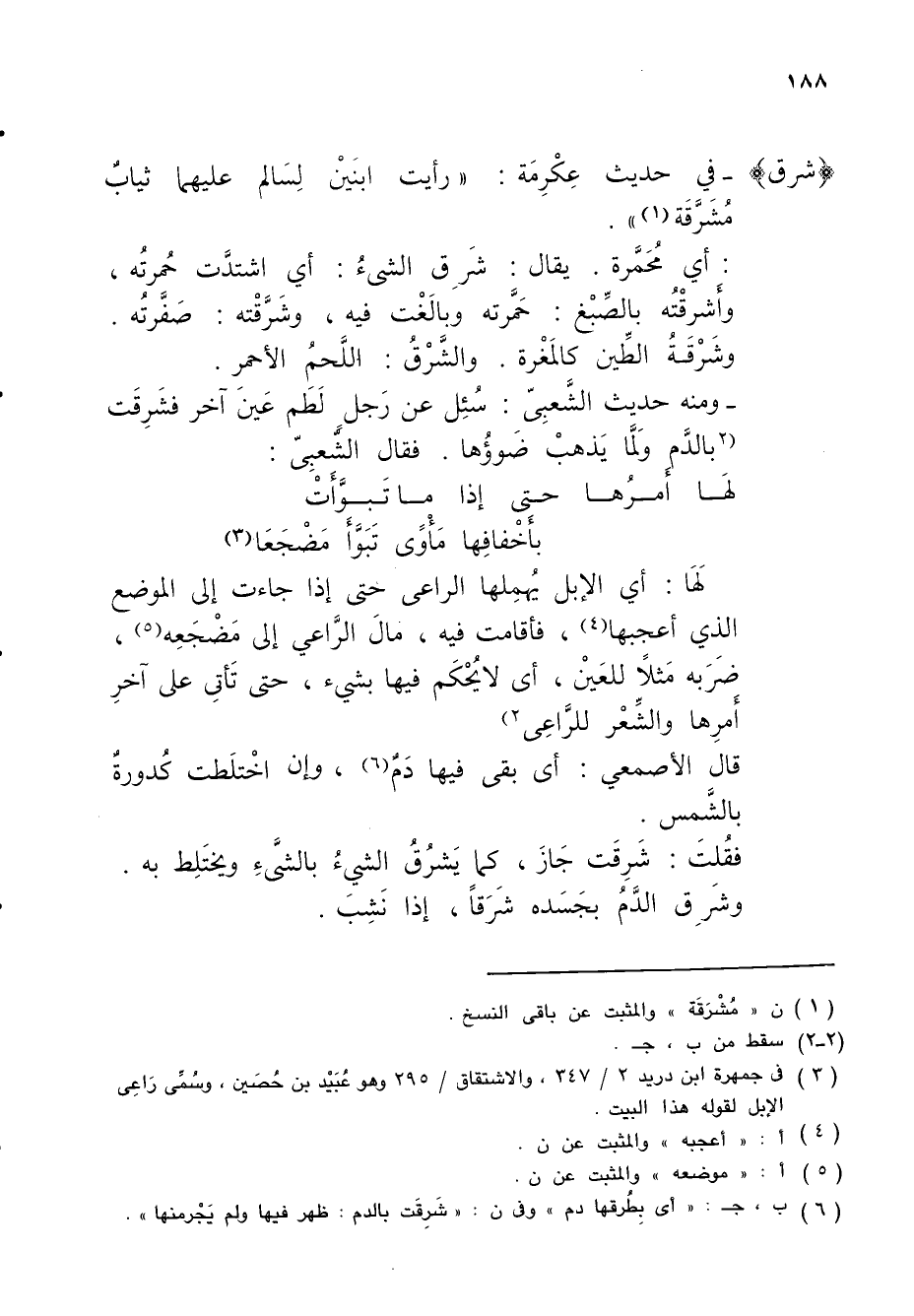 (¬6) ب، جـ: "أي بِطُرقها دم" وفي ن: "شَرِقَت بالدم: ظهر فيها ولم يَجْرمنها".
