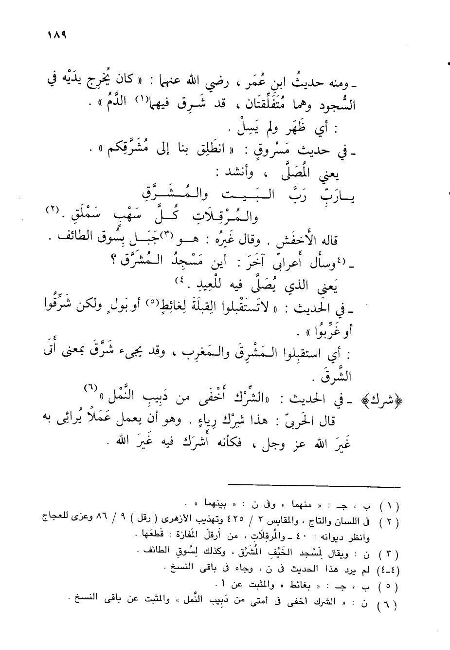 (شرك) - في الحديث: "الشِّرْك أَخْفَى من دَبِيبِ النَّمْل" (¬6)