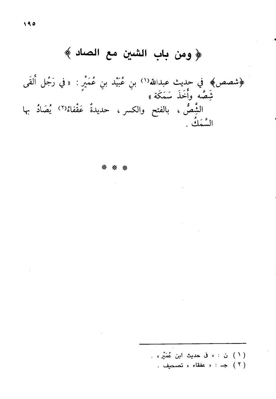 (شصص) في حديث عبد الله (¬1) بنِ عُبَيْد بنِ عُمَيْرٍ: "في رَجُل أَلقَى شَصَّه وأَخَذَ سَمَكَة"