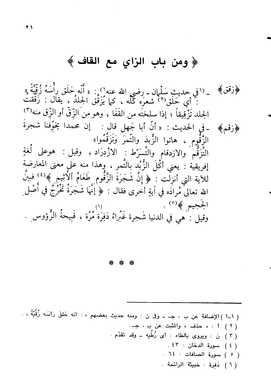 (1 - 1) الإضافة عن ب، جـ - وفي ن: ومنه حديث بعضهم ": أنه حَلقَ رأسَه زُقَّيّةً".