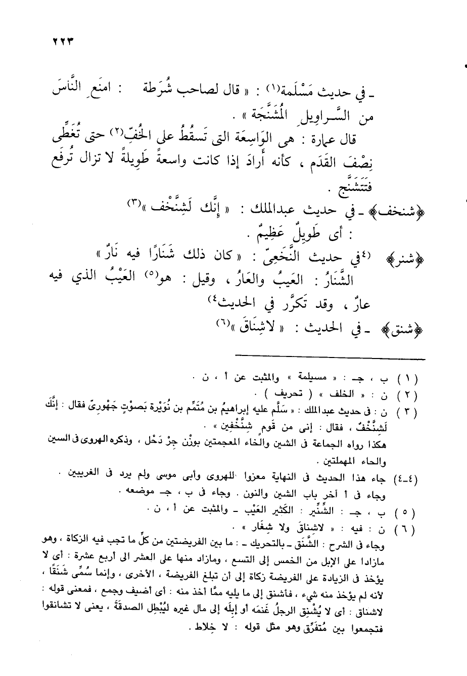 (4 - 4) جاء هذا الحديث في النهاية معزوا للهروى وأبى موسى ولم يرد في الغريبين. وجاء في أآخر باب الشين والنون. وجاء في ب، جـ موضعه.