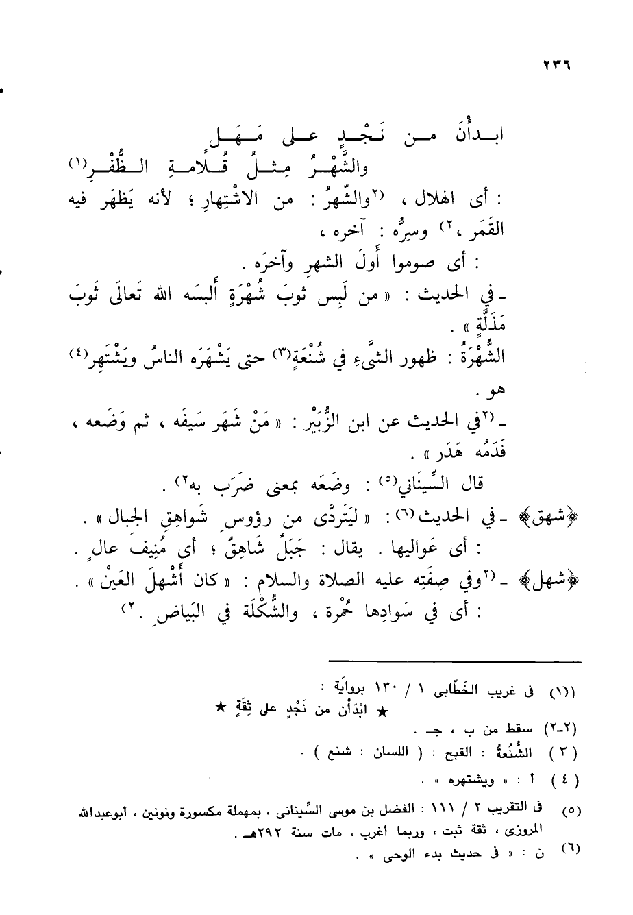 : أي الهلال، (2 والشّهرُ: من الاشْتِهارِ؛ لأنه يَظهَر فيه القَمَر، 2) وسِرُّه: آخره،
