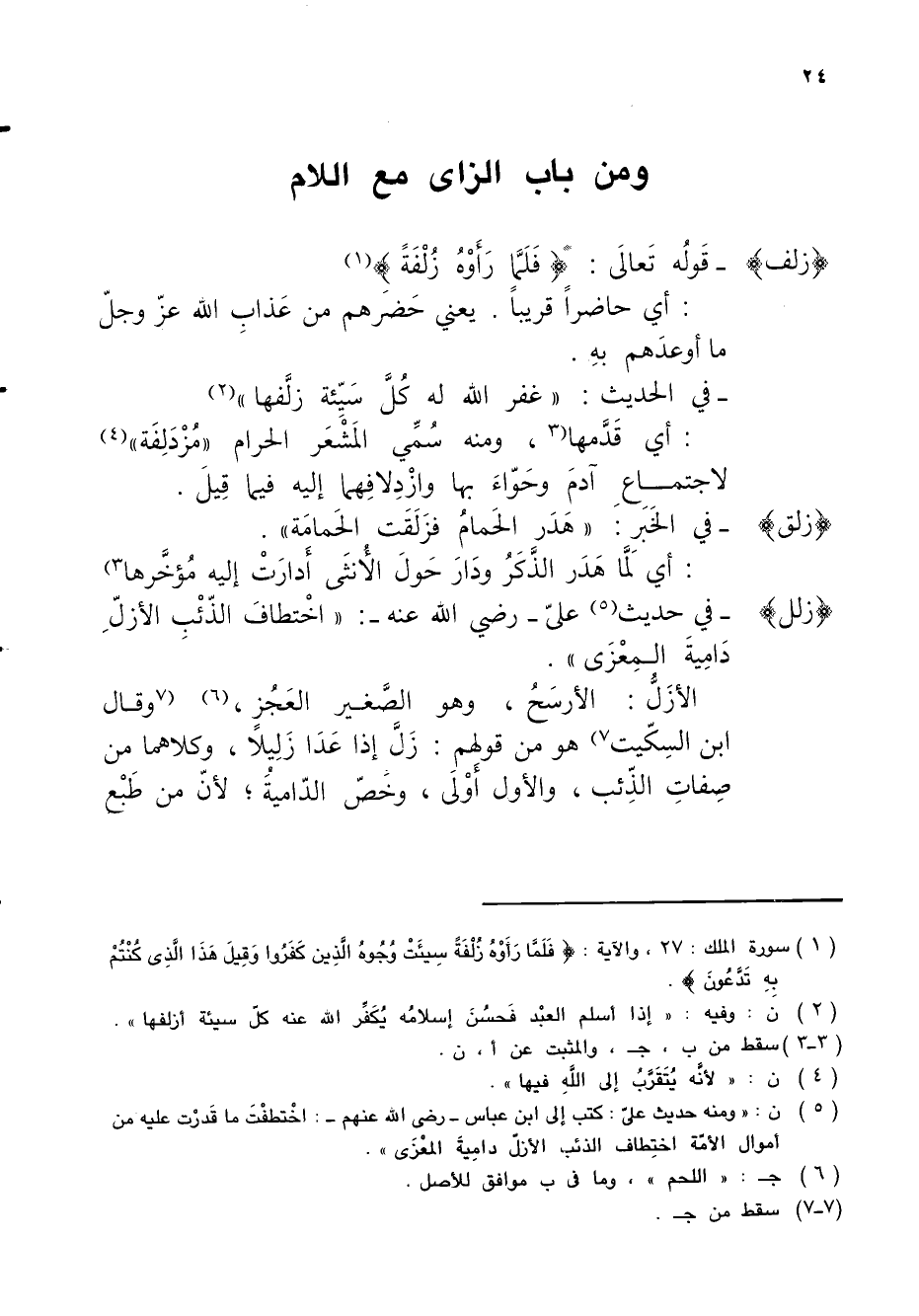 (زلف) - قَولُه تَعالَى: {فَلَمَّاِ رَأَوْهُ زُلْفَةً} (¬1)